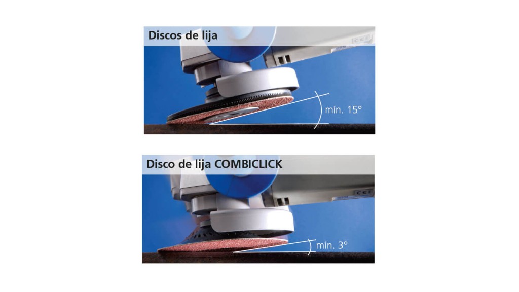 Gracias a los platos de apoyo COMBICLICK, las herramientas COMBICLICK pueden utilizarse en amoladoras angulares convencionales.